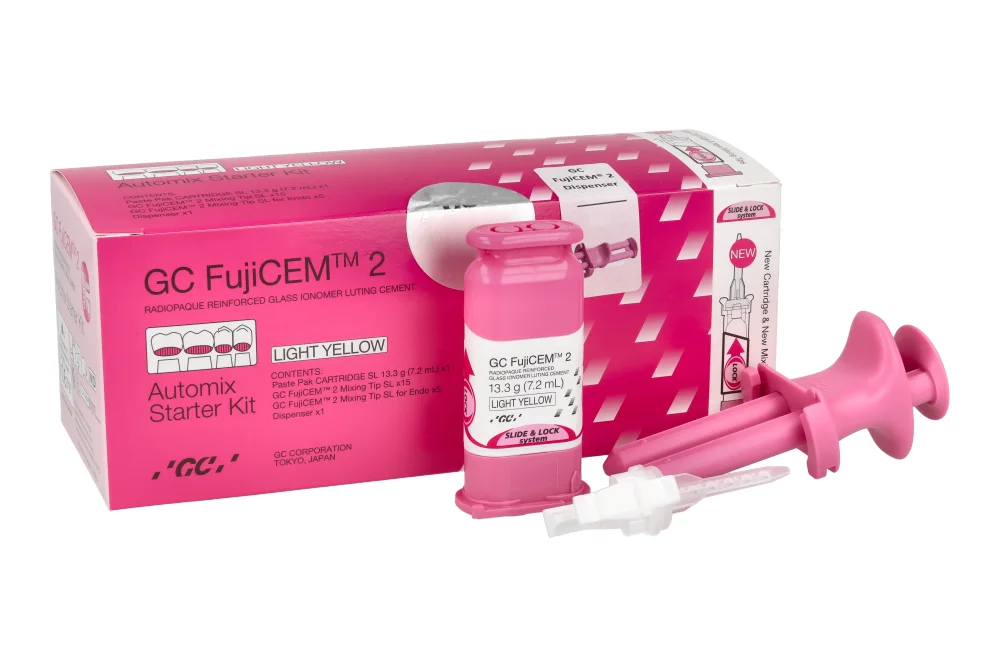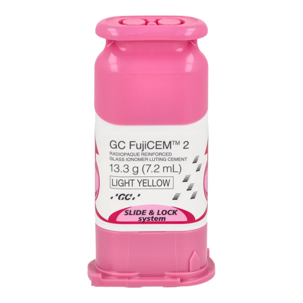 FujiCEM 2 firmy GC to cement glasjonomerowy modyfikowany żywicą w formie pasta - pasta, przeznaczony do osadzania uzupełnień protetycznych.