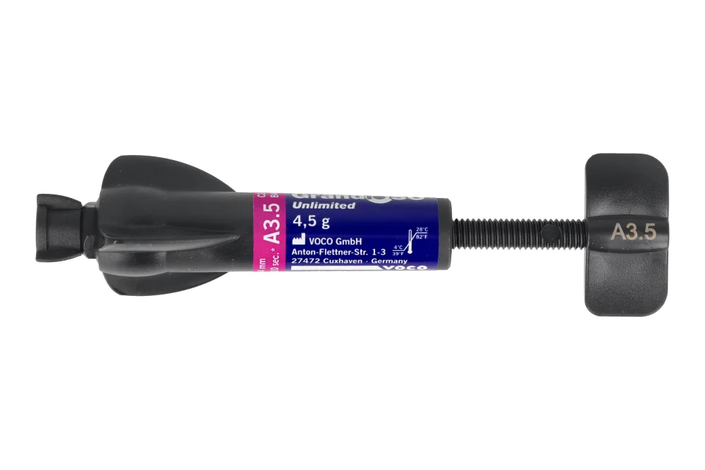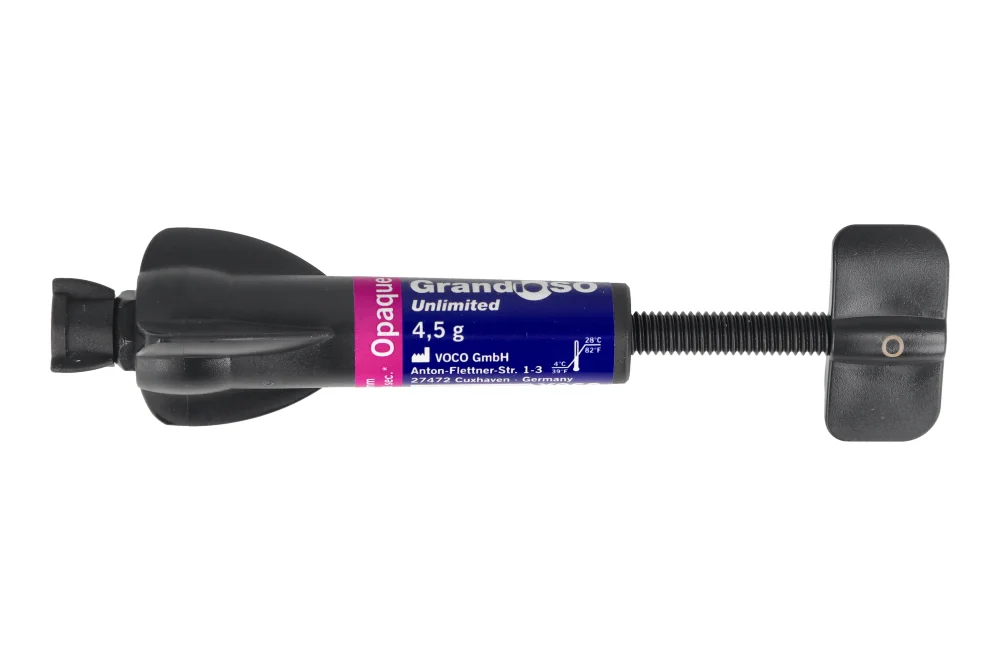 Opakowanie zawiera: Strzykawkę GrandioSO Unlimited 4,5 g VOCO w wybranym wariancie kolorystycznym.