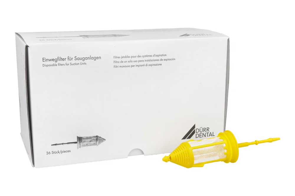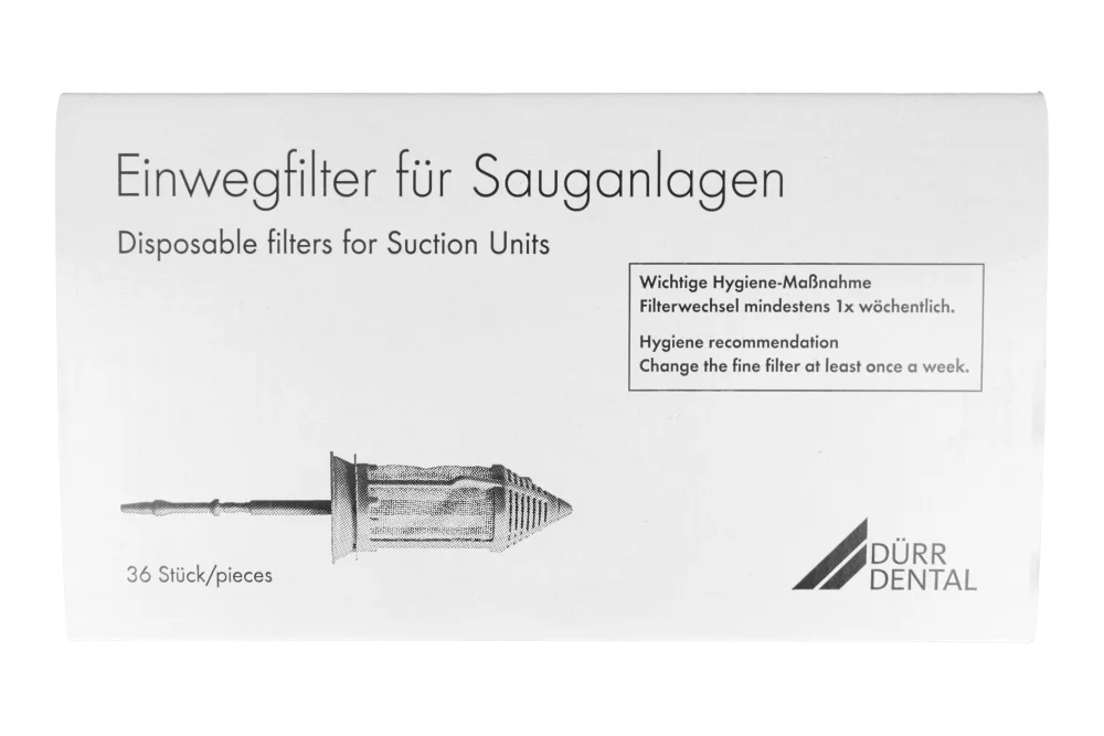 Opakowanie zawiera: Jednorazowe filtry do ssaka 36 szt. Durr.