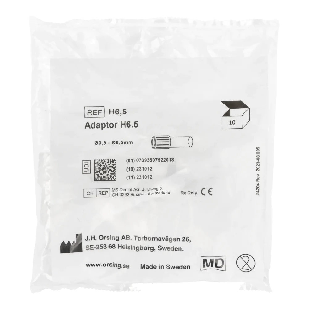 Adapter H6,5 (3,9–6,5 mm) to specjalistyczny reduktor stomatologiczny, który pozwala łączyć różne końcówki i przewody systemów ssących (ślinociągów, mikrossaków itp.) w gabinecie dentystycznym.