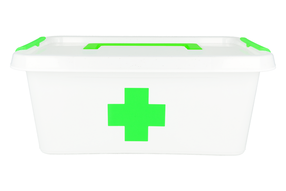 Apteczka Antibacterial z rączką firmy Orplast, jest pojemnikiem z antybakteryjnym mikrosrebrem, który pomieści wszystkie lekarstwa i opatrunki sanitarne.