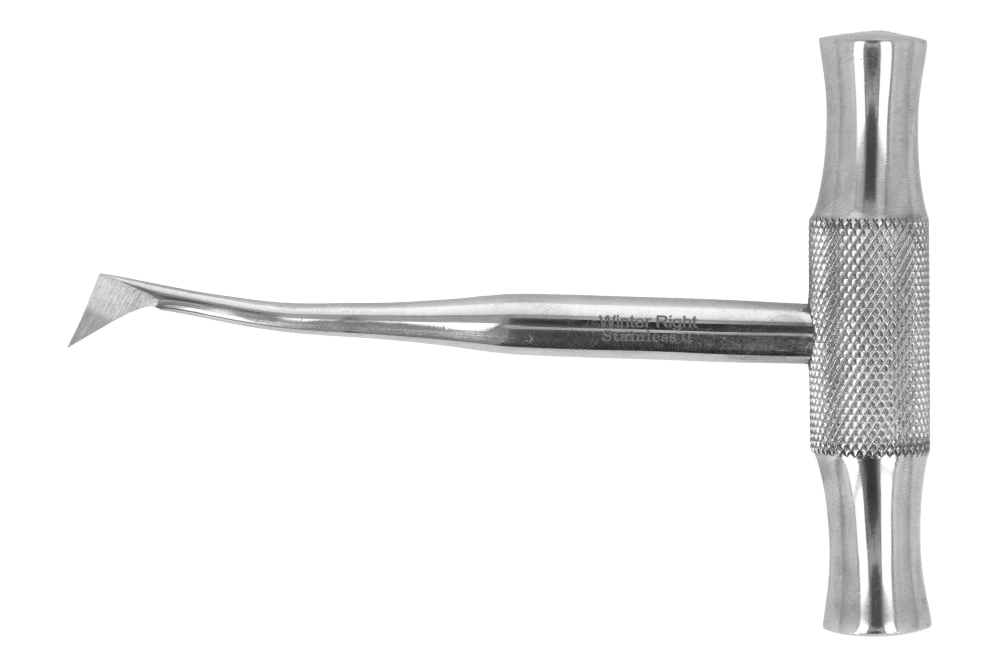 Dźwignia korzeniowa Winter prawa służy do usuwania korzenia mezjalnego po stronie lewej i korzenia dystalnego po stronie prawej.