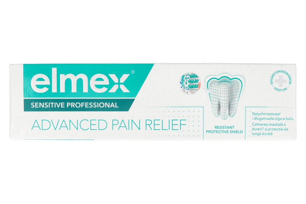 Elmex Sensitive Professional, to pasta do mycia zębów, z technologią Pro -Argin, która zapewnia klinicznie udokumentowaną ulgę w bólu spowodowanym nadwrażliwością zębiny.