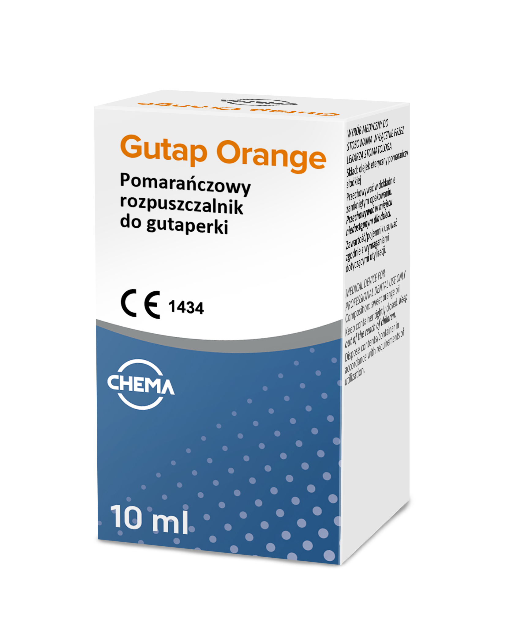 Preparat stosowany w przypadku ponownego leczenia endodontycznego w celu rozpuszczenia gutaperki znajdującej się w kanale korzeniowym. Gutap Orange to typowy rozpuszczalnik, który posiada zdolność do rozpuszczania gutaperki i innych materiałów uszczelniających (doskonale sprawdza się w przypadku uszczelniaczy na bazie eugenolu lub tlenku cynku), ułatwiając ich usunięcie.