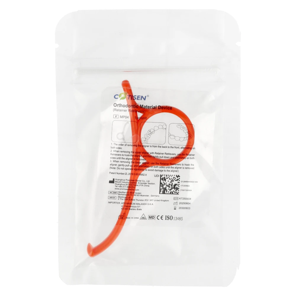 Opakowanie zawiera: Instrument do zdejmowania retainerów 1 szt. COTISEN.