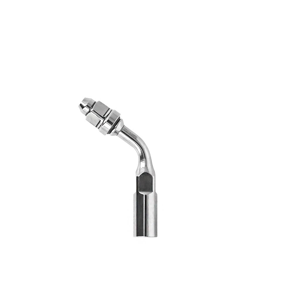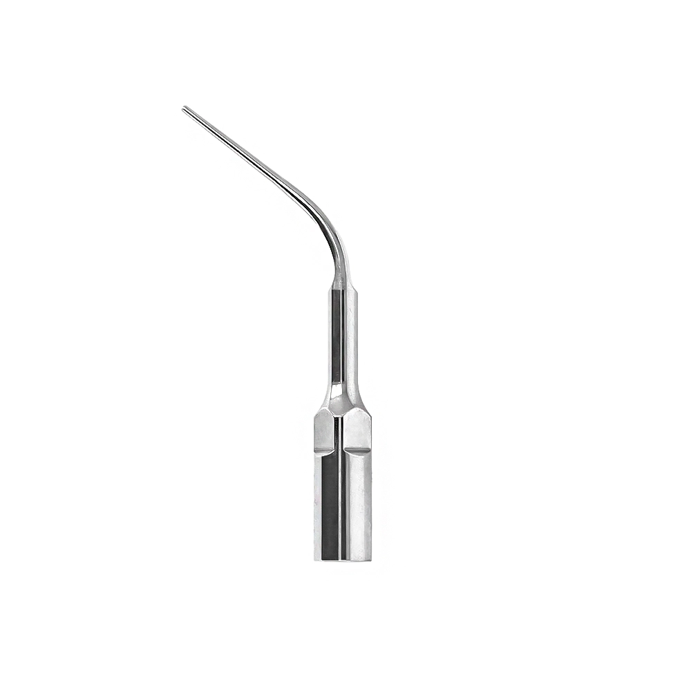 Tip P3 - końcówka ultradźwiękowa typu perio, przeznaczona do pracy w głębokich kieszonkach dziąsłowych oraz do precyzyjnego usuwania złogów poddziąsłowych. Dzięki smukłej konstrukcji i delikatnej końcówce roboczej zapewnia skuteczność przy jednoczesnej ochronie tkanek miękkich. Długość końcówki 31,9 mm