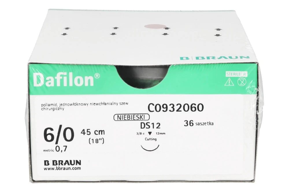 Opakowanie zawiera: Nici chirurgiczne niewchłanialne Dafilon 36 szt., w wybranym wariancie.