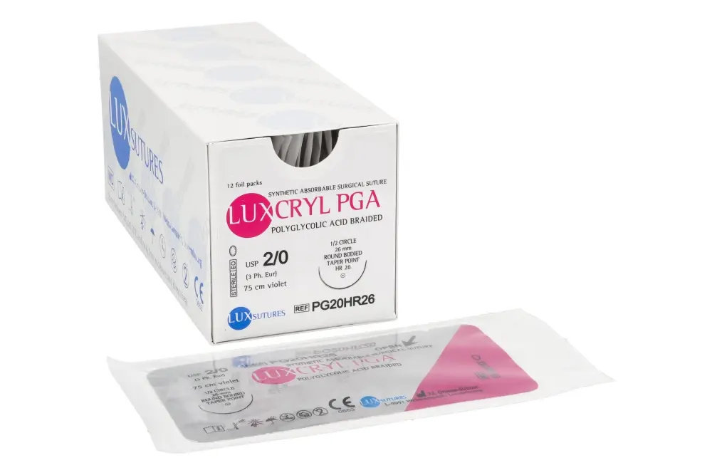 LUXCRYL PGA to syntetyczna, wchłanialna nić chirurgiczna o strukturze plecionej i powlekanej (multifilament), przeznaczona do zamykania tkanek miękkich oraz podwiązywania. Wykonana z kwasu poliglikolowego, zapewnia bardzo dobrą poręczność, płynne przechodzenie przez tkanki oraz pewne i stabilne wiązanie węzłów.