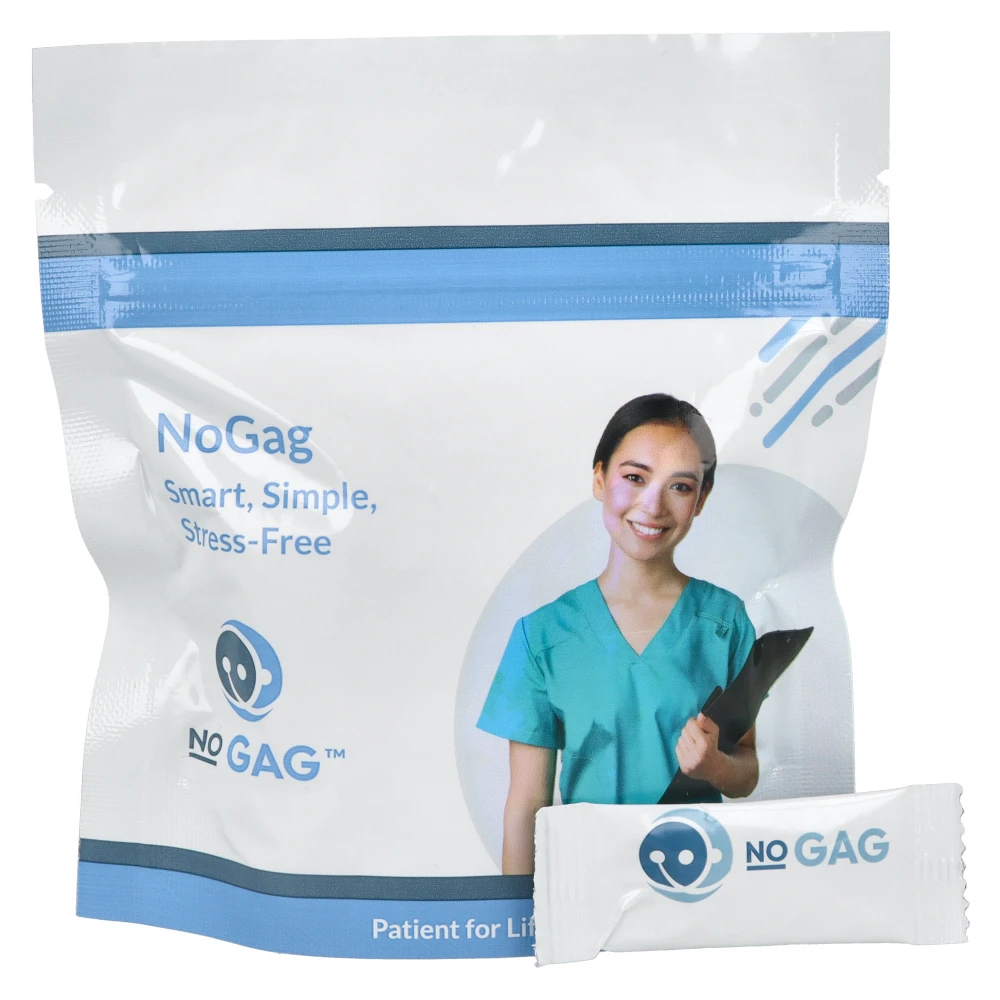 NoGag to przełomowy preparat w formie proszku, stworzony z myślą o pacjentach z silnym odruchem wymiotnym, który często utrudnia lub wręcz uniemożliwia przeprowadzenie precyzyjnych procedur stomatologicznych. Statystyki pokazują, że nawet 8% pacjentów doświadcza tego problemu przy każdej wizycie, co generuje stres, wydłuża czas zabiegu i niekiedy wymusza rezygnację z zaplanowanego leczenia. NoGag pozwala na płynną pracę zespołu medycznego bez konieczności stosowania sedacji.