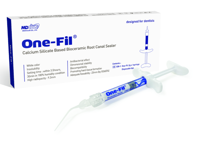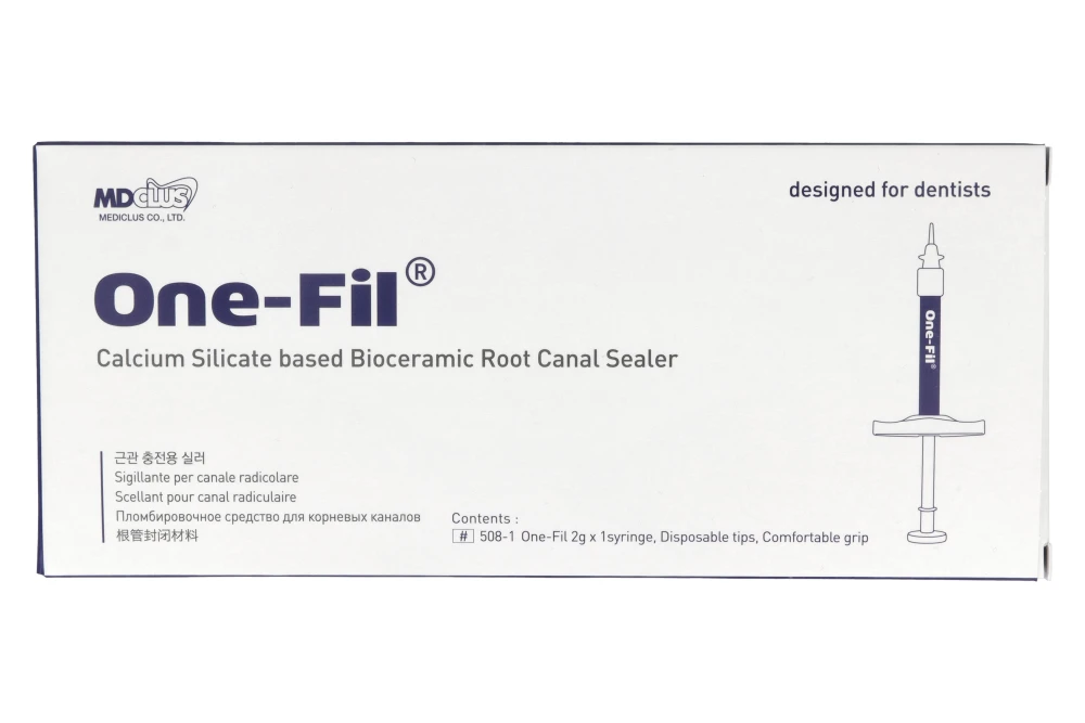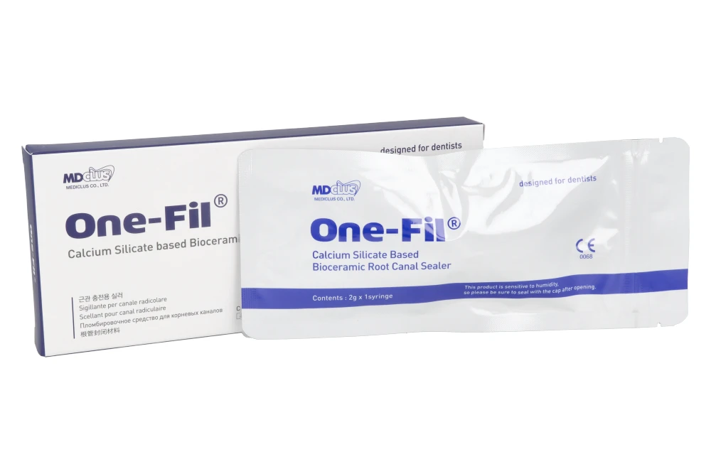 One-Fil to gotowy do użycia, bioceramiczny uszczelniacz kanałów korzeniowych na bazie krzemianu wapnia, zaprojektowany w sposób by zapewnić trwałe, szczelne i biologicznie obojętne wypełnienie kanału korzeniowego.