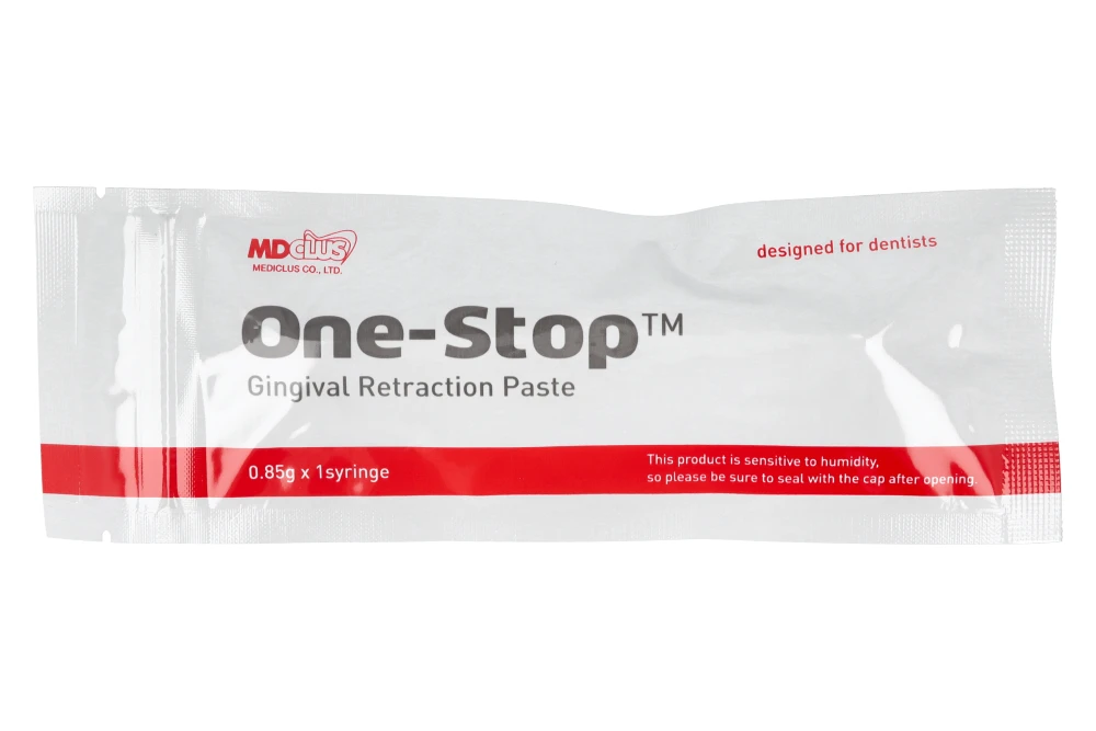 One-Stop™ to zaawansowany preparat stomatologiczny przeznaczony do precyzyjnego i efektywnego odsunięcia dziąsła (gingival retraction) oraz kontroli krwawienia podczas przeprowadzanych procedur protetycznych i diagnostycznych. Dzięki optymalnie dobranej formule preparat działa szybko i precyzyjnie, co przekłada się na lepsze wyniki kliniczne – szczególnie w zabiegach wymagających dużej dokładności, takich jak pobieranie wycisków czy przygotowanie uzupełnień protetycznych.