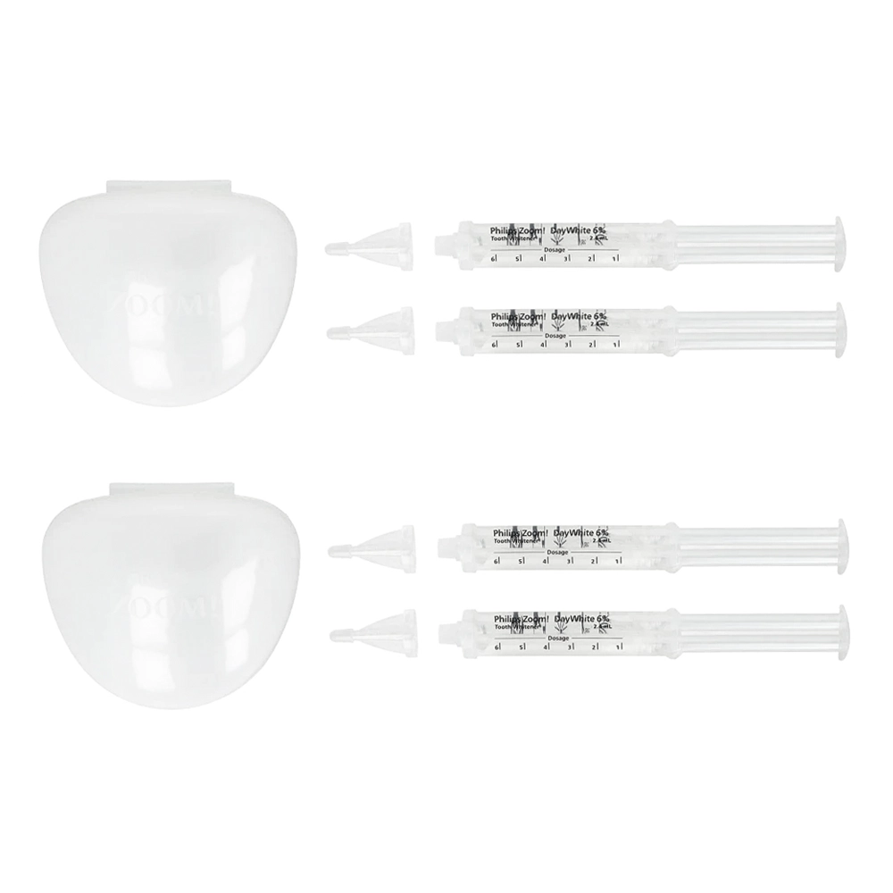 - 2 opakowania żelu Philips Zoom DayWhite 6% HP (nadtlenek wodoru) do stosowania w ciągu dnia przez pacjenta (6% nadtlenku wodoru ≈ 16,6% nadtlenku karbamidu)