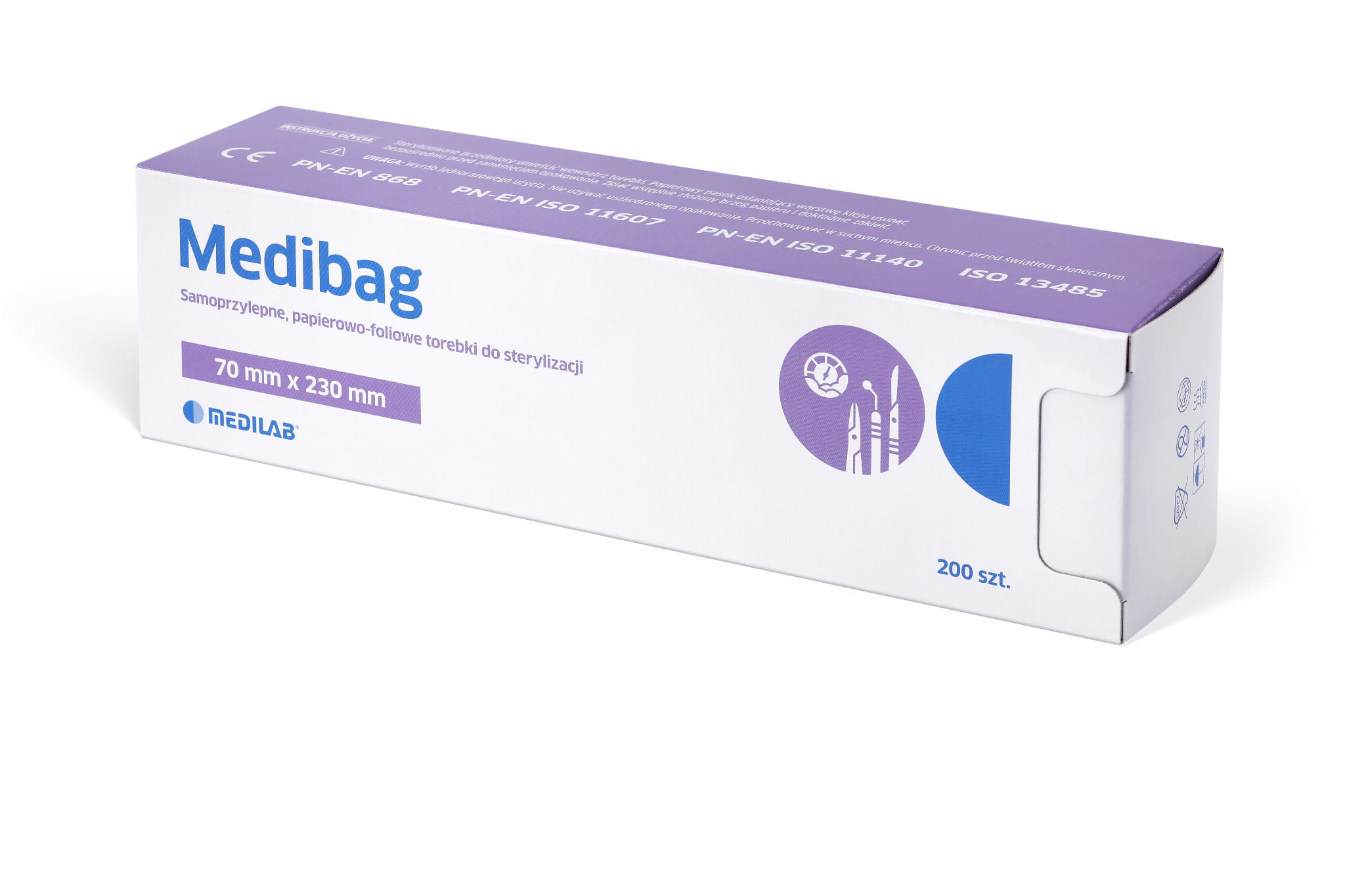 Medibag to samoprzylepne torebki papierowo-foliowe przeznaczone do sterylizacji narzędzi medycznych i stomatologicznych w autoklawie parowym. Wykonane z wysokiej jakości papieru medycznego oraz przezroczystej folii, umożliwiają łatwą kontrolę zawartości opakowania i zapewniają skuteczną barierę sterylną po zakończeniu procesu sterylizacji.