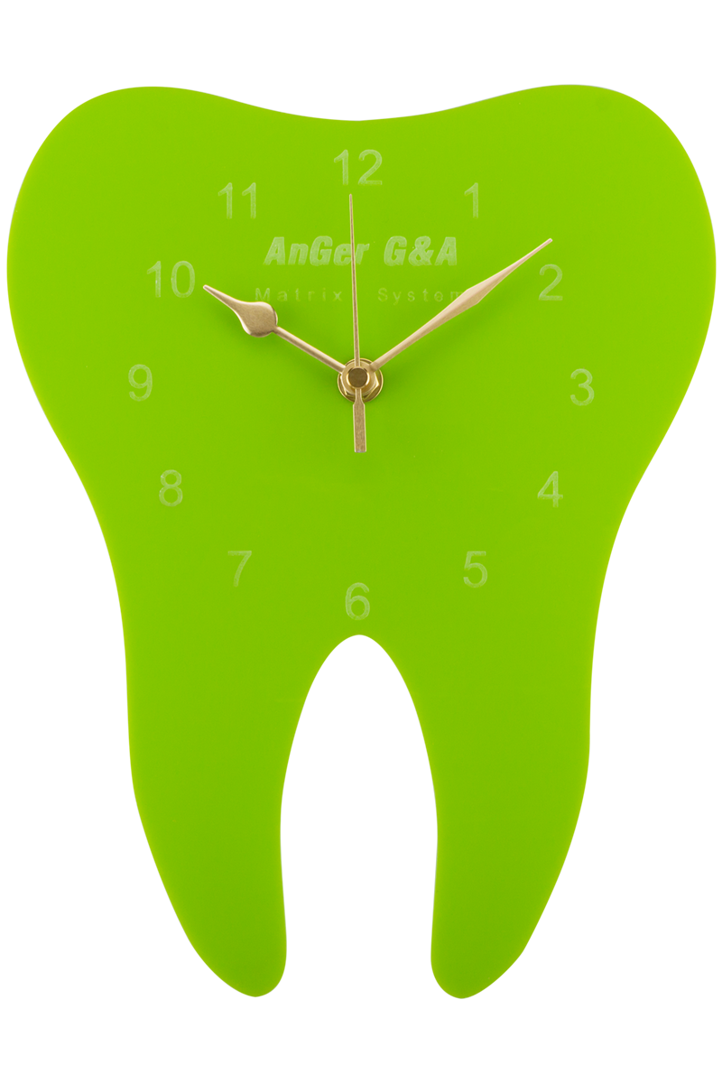 Proponowany przez nas zegar w kształcie ząbka, jest produkowany w szerokiej gamie kolorystycznej. Dzięki takiej różnorodności, można dobrać odpowiedni kolorystycznie zegar, do gotowego już wystroju gabinetu czy poczekalni. Podczas oczekiwania na wizytę w gabinecie stomatologicznym, pacjent powinien móc się odprężyć dlatego bardzo ważna jest aranżacja poczekalni i dobór odpowiednich dodatków. Jednym z nich jest na pewno zegar, który odmierza czas zbliżającej się wizyty, a ciche jego tykanie działa uspokajająco.