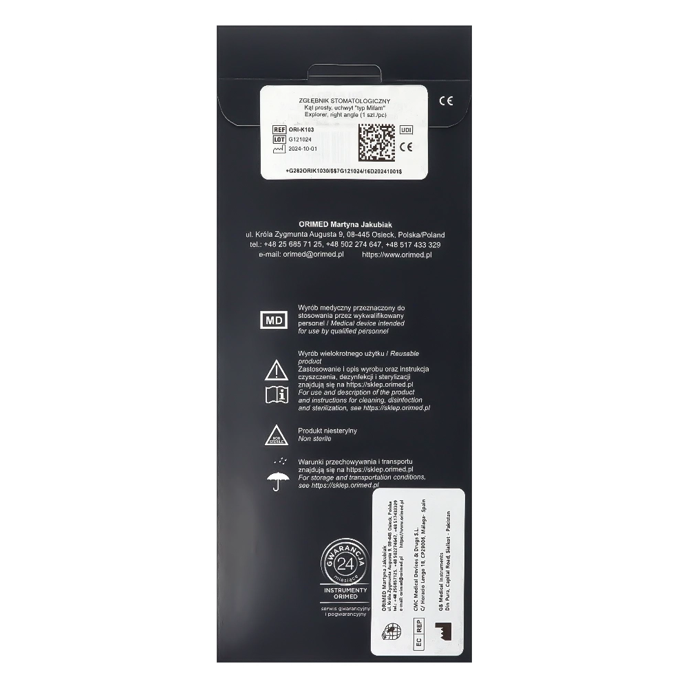 Opakowanie zawiera: 1x Zgłębnik Explorer dwustronny Dental Market, w wybranym wariancie.