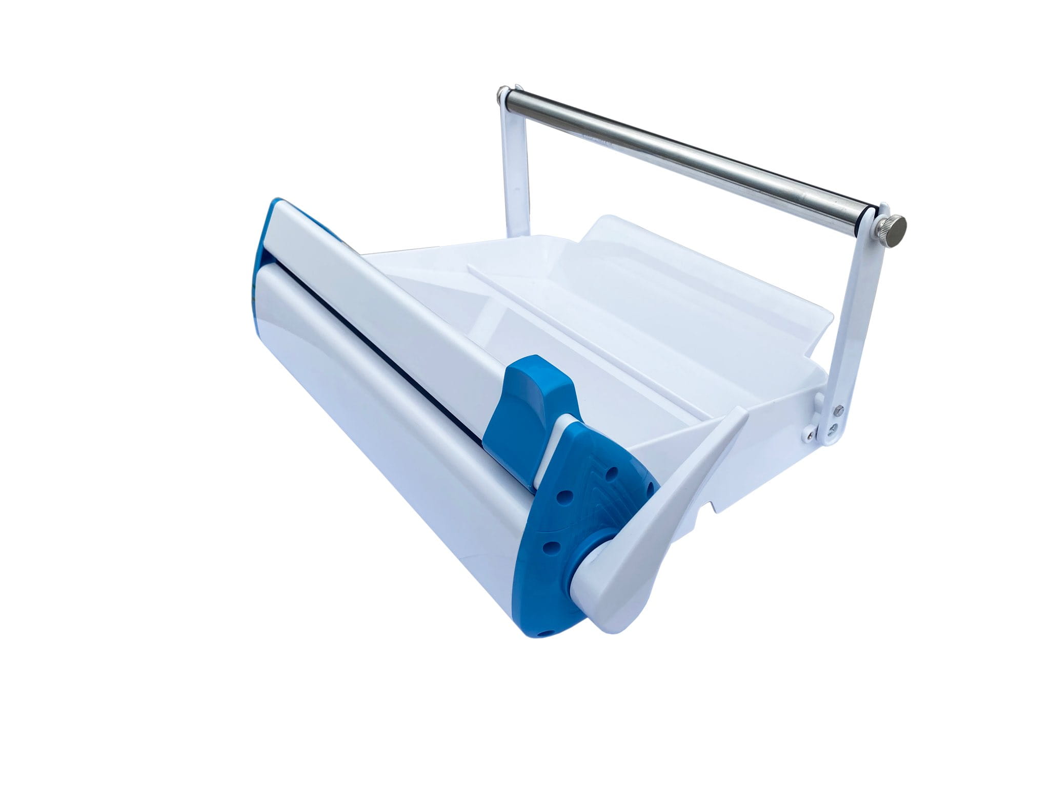 Zgrzewarka umożliwia pracę z gotowymi torebkami sterylizacyjnymi oraz rękawami w rolkach o łącznej szerokości do 320 mm, co daje dużą elastyczność w doborze opakowań. Wbudowany, dwustronny nóż z wzmocnionymi ostrzami umożliwia precyzyjne i bezpieczne odcinanie materiału bez konieczności częstej wymiany elementów tnących.