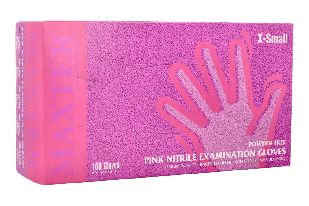 Opakowanie zawiera: Rękawiczki nitrylowe różowe MAXTER 100 szt. w wybranym wariancie.