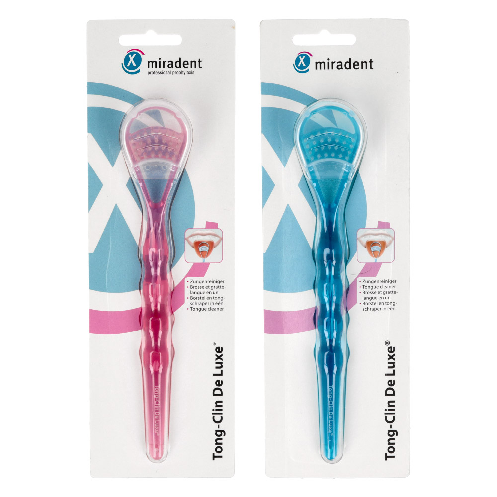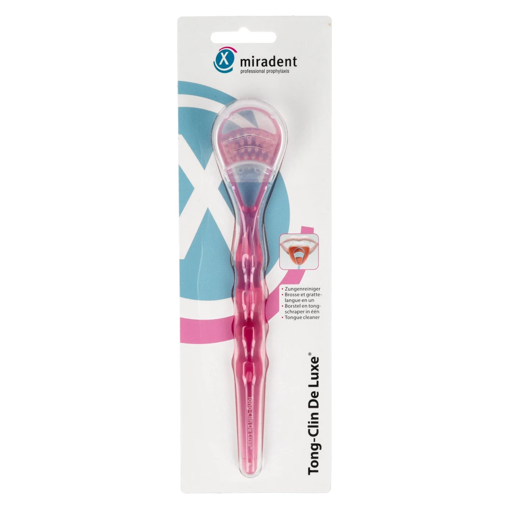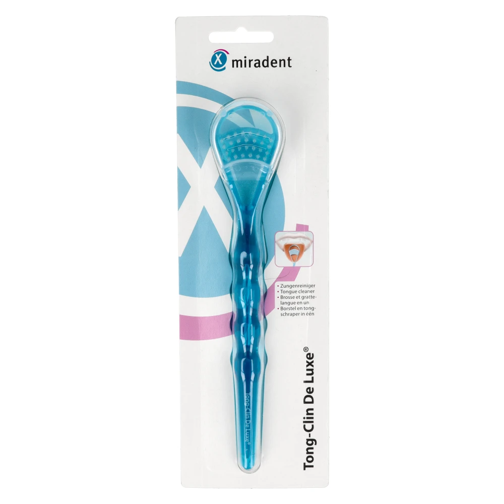Opakowanie zawiera: Tong-Clin Szczotka do czyszczenia języka Miradent.